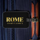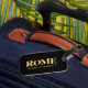 Marque de bagages élégante avec Rome, Italie coordonnées de latitude et longitude en polices or sur arrière - plan noir.