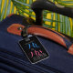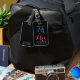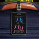 Voici une étiquette ultra chic de bagage créée particulièrement pour les ménages mariés. Un arrière - plan noir accentué sur l'avant avec le lettrage audacieux, de bloc dans le blanc, le rose et le bleu. Facilement personnalisé avec votre nom de famille. Customisez et remettez à la côte le nom de famille si pour s'adapter nécessaire/suffisance le secteur. Le verso a le secteur des textes supplémentaires que vous pouvez facilement personnaliser avec votre information de contact juste dans le cas que votre sac devient perdu.
