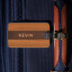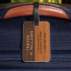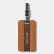 Étiquette À Bagage Mahogany Wood And Brown Leather Texture Monogram
