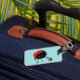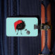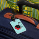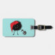 Drôle étiquette de bagage de Noël maléfique avec un insecte de grincement de bande dessinée noire qui déballage un cadeau de Noël. Cette étiquette maléfique de bagage de bug ajoutera un peu de plaisir lorsque vous voyagez pour Noël. Il a un nom, une adresse et un numéro de téléphone personnalisables.