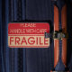 Poignée rouge et marron avec soin, signe fragile