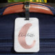Marbre blanc et gris chic rose lettre d'or C monogramme nom bagage tag. Ce design branché présente une grande lettre d'or rose métallique "C". La lettre ne peut pas être modifiée, mais s'il vous plaît voir ma collection d'alphabet d'or rose pour d'autres lettres. Votre nom personnalisé est écrit dans un élégant script écrit à la main. Un cadeau d'anniversaire ou de Noël parfait !