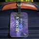Étiquette À Bagage Marbre fluide abstrait pailleté violet élégant
