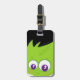 Une étiquette à bagages avec un adorable visage monstre frankenstein. Il a de grands yeux et un petit sourire avec une cicatrice sur le front. Des boulons classiques qui sortent des côtés de sa tête. Ce type est vraiment mignon et pas effrayant du tout.