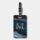 Étiquette À Bagage Marine Blue Gold Agate Monogramme Nom Script Initi