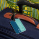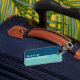 Des étiquettes personnalisées modernes pour les bagages de voyage pour les hommes. Style élégant et élégant de typographie. Conception de tonalité en duo classique avec des lettres initiales de nom monogrammé. Elégante idée cadeau pour papa, oncle, père, frère, mari, collègue, patron, collègue, etc. Design à rayures maniaques. Couleurs turquoises et bleues. Couleur arrière - plan personnalisable.