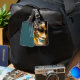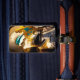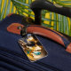 Un masque fait main de carnaval à Venise, Italie, peinte dans des couleurs audacieuses de turquoise, d'or et de noir. Cette étiquette de bagage est entièrement personnalisable et prête à être personnalisée.