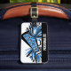 Étiquette À Bagage Mégaphone de Pom-pom girl bleu, blanc et noir