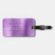 Balise de bagage en métal brossé à Parties scintillant violet monogramme.