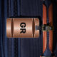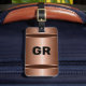 Copper brown metallic texture look with a geometric textured stripe, customizable black typography. Simple masculine design.