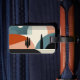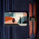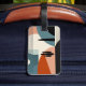 Paysage abstrait d'une scène désertique aux lignes et aux formes dans les tons marron, orange, turquoise, beige, bronzé et noir.