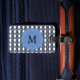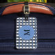 Étiquette À Bagage Mod Retro Monogram Blue Abstrait Scarab Motif
