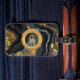 Étiquette À Bagage Modern Luxe Black Gold Agate Marble Monogram