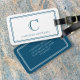 Étiquette À Bagage Modern Monogram Navy Blue Double Border