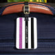 Étiquette À Bagage Moderne Black Stripes FAUX Purple Glitz et nom