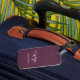 Simple et élégant violet solide avec nom de script et nom de famille serif accessoire voyage.