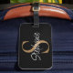 Étiquette À Bagage Monogram Elegant Script Name Black Gold