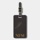 Marque de bagage avec un chien du Labrador noir, initiale(s) monogramme(s)/nom, nom et adresse sur un arrière - plan noir. Personnalisez avec vos initiales monogrammes/nom, nom et adresse en utilisant les modèles faciles. La couleur de police, le style de police, la taille de police et l'arrière - plan noir sont personnalisables.