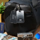 Cette nuance élégante de bagage à rayures noires vous aidera à repérer votre sac dans une foule. Il est muni d'un monogramme à l'avant et d'une courroie pour que vous puissiez l'attacher à votre poignée de bagage. Son design fonctionnel et branché en fait un lieu idéal pour les bagages de voyageurs ou les bagages à main.