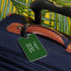 Cette étiquette élégante à rayures vertes vous aidera à repérer votre sac dans une foule. Il est muni d'un monogramme à l'avant et d'une courroie pour que vous puissiez l'attacher à votre poignée de bagage. Son design fonctionnel et branché en fait un lieu idéal pour les bagages de voyageurs ou les bagages à main.