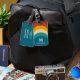 Cette étiquette élégante à rayures de coucher de soleil vous aidera à repérer votre sac dans une foule. Il est muni d'un monogramme à l'avant et d'une courroie pour que vous puissiez l'attacher à votre poignée de bagage. Son design fonctionnel et branché en fait un lieu idéal pour les bagages de voyageurs ou les bagages à main.