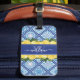 Élégant citron et carrelage bleu méditerranéen Monogrammed Luggage Tag. citrons d'aquarelle unique et tendance, feuilles verdoyants sur un arrière - plan de tuiles bleues avec un modèle monogramme personnalisé et élégant nom de script de calligraphie modèle. Ce joli bagage botanique vert, jaune, bleu et blanc ferait un cadeau réfléchi pour maman, fille, grand-mère, etc.