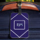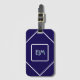 Étiquette À Bagage Monogramme blanc et bleu géométrique chic