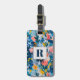 Étiquette À Bagage Monogramme botanique Abstrait bleu et rose tendanc