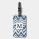 Étiquette À Bagage Monogramme Chevron Grunge Bleu et Blanc