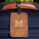 Moderne, cuir marron, écriture, étiquette monogramme. Personnalisez-le avec votre initiale et votre nom.