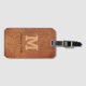 Étiquette À Bagage Monogramme Chic Cuir Brown Nom Script Moderne