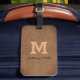 Moderne, cuir marron, écriture, étiquette monogramme. Personnalisez-le avec votre initiale et votre nom.