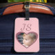Créez votre propre étiquette de bagage monogramme avec ce joli modèle photo rose avec espace pour ajouter une photo personnalisée. Téléchargez vos photos préférées et customisez le nom avec votre personnalisation. Un grand cadeau pour maman le jour de la fête des mères ou un anniversaire quand vous ajoutez votre propre photo des enfants. Dispose d'une couverture rose douce avec des arrière - plans de coeur de parties scintillant sur les modèles photo du coeur.