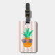 Dites bonjour à l'été avec notre étiquette de bagage personnalisée chic de plage. Le design rayé rose et blanc est orné d'une illustration d'ananas aquarelle portant une paire de lunettes de soleil rouge jaunâtre. Personnalisez l'avant avec votre monogramme et ajoutez votre nom et vos coordonnées à l'envers.