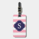 Étiquette À Bagage Monogramme de bandes bleues et roses