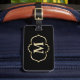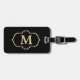 Cette étiquette personnalisée de bagage présente votre monogramme en or dans un cadre décoratif de couleur or assorti et placé sur un arrière - plan noir solide. Le dos de la balise est noir solide, avec votre texte customisé en or. Très distinctif et élégant.