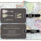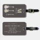 Un monogramme de guitare électrique moderne avec étiquette de voyage avec des coordonnées personnalisées avec des modèles faciles à utiliser, personnalisez en ajoutant un nom et un monogramme initial sur l'avant et les coordonnées sur le dos. Illustrations de guitare semi-acoustique dessinées à la main dans les tons gris vert sur un arrière - plan cool à la mode brun foncé. Le design minimaliste parfait pour la rockstar cool dans votre vie peut être Parfait pour voyager où des rêves musicaux créatifs sont nés. Idéal pour les mélomanes et surtout les guitaristes. Instrument de musique oeuvre originale créée par l'artiste Catherine Sweetman