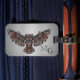 Belle étiquette de bagage personnalisée avec un hibou métallisé de couleur bijou orné.
