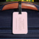 Étiquette de bagage personnalisée élégante minimaliste moderne en or avec nom en monogramme, écriture de signature. Ce design délicat présente un nom personnalisé dans une police calligraphique cursive avec empattements (ou typographie) et le texte d'information de contact (au dos) en or sur fond couleur rose poudré ou rose bébé. Celles-ci sont faciles à personnaliser. Cadeau féminin élégant pour un mariage, une douche de mariée, un anniversaire de 16 ans, une remise de diplôme, et pour quiconque aime le style glamour.