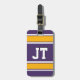 Super article pour le fan du Minnesota dans votre vie. Style maillot de football rayé violet, or et blanc avec lignes de texte personnalisables en violet et blanc. Les couleurs que nous avons choisies pour cette série de étiquettes de sacs correspondent à vos couleurs d'équipe préférées, nous ne pouvons pas les mentionner ici. Parfait pour les amateurs de football. Avant de la balise a un monogramme personnalisable avec l'ombre tandis que derrière de la balise a le nom et les champs d'informations de contact.