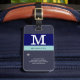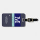 Étiquette À Bagage monogramme de voyage bleu et moderne
