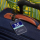Conception personnalisée (nom et initiale) de bandes bleues avec des informations supplémentaires du voyageur. Dans vos prochaines aventures, ne vous inquiétez pas de perdre vos sacs