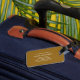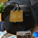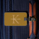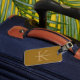 Balise de bagage en or avec un design classique. Vous pouvez personnaliser l'avant et l'arrière de la balise.