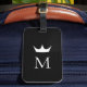 Étiquette À Bagage Monogramme élégant Couronne noir et blanc