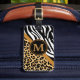 Voyagez dans le style avec cette étiquette faite sur commande de bagage de monogramme d'impression d'empreinte de léopard et de zèbre. Une manière de cool et d'amusement de décorer et identifier votre bagage. Montrez votre personnalité avec ces amusement et étiquette à la mode de bagage. Customisez avec vos informations personnelles. Cliquez sur la "personnaliser il !" boutonnez pour changer la taille des textes, la couleur des textes, le style de police et les plus !