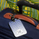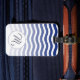 Marque à bagages élégante avec motif bleu ondulé et initiale élégante.