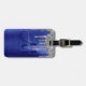 Ajoutez une touche de parties scintillant et de glamour à vos bagages avec cette étiquette de sac personnalisée élégante. Ce modèle design chic est doté d'un monogramme de script bleu marine moderne avec un nom en gris sur un arrière - plan de texture métallique brossée bleu cobalt avec une bordure supérieure de parties scintillant à goutte d'argent faux. Un cadeau féminin unique pour l'anniversaire, les fêtes et toute occasion spéciale. Conçu pour vous par des Tee - shirts extrêmes !