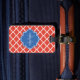 Une étiquette motif Quatrefoil Marocaine orange-rouge tendance avec un badge bleu que vous pouvez personnaliser en ajoutant votre nom et monogramme initial à. Il fait partie de la collection Cherry Tomato and Palace Blue Spring Quatrefoil Collection