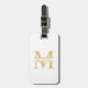 Étiquette À Bagage Monogramme et nom personnalisé blanc et or