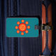 Ajoutez l'acclamation au voyage d'été avec cette étiquette lumineuse et colorée de bagage dans la sarcelle d'hiver comportant un motif indien du sud traditionnel de cercle de "maruthani" en orange et rouge. Concevez inspiré par le motif simple et élégant ma maman utilisée pour dessiner sur mes mains et pieds. Particulièrement créé pour le jour de mère. Changez la grande lettre "S" en votre initiale pour un regard décoré d'un monogramme fait sur commande.